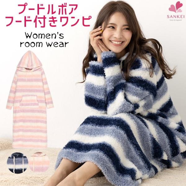 楽天市場 モコモコ ボーダー ルームウェア パジャマ ワンピース 女の子 冬 もこもこ 可愛い ふわふわ 防寒 白 青 ピンク 長袖 部屋着 ワンピース ルーム ウェア おしゃれ ナイトウェア あったかい 暖かい ー ネグリジェ ワンピ 質が良い睡眠 送料無料 Mude ムード